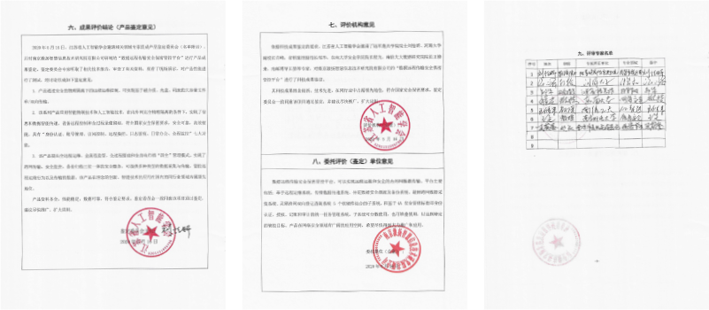 江苏省科技部门组织了由中国工程院院士刘怡昕为主任、东南大学网安学院程光教授、河海大学副校长许峰教授、江苏省档案局邹华副局长、江苏省保密委王嶺誉处长、 信息工程大学王修耒教授等组成鉴定委员会,对该科技成果进行了科技成果和产品的双鉴定。